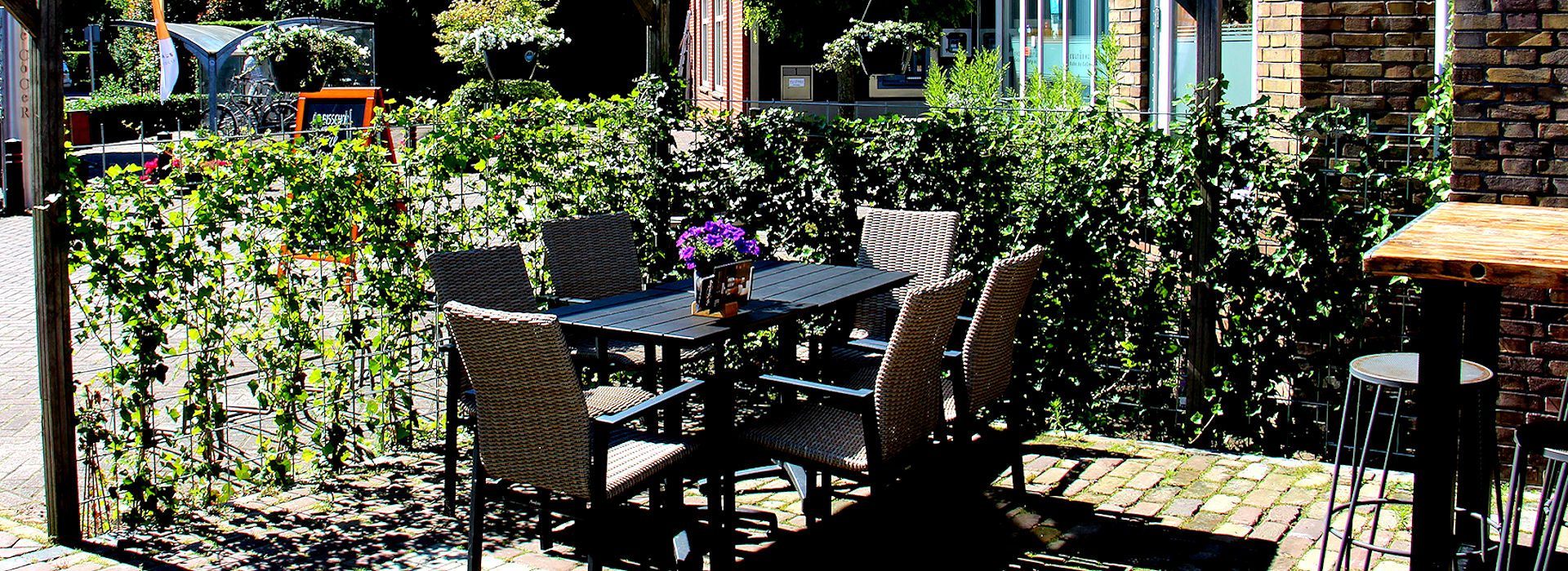 men een kopje koffie drinken kan thuis maar ook buiten aan de buurttafel of op het terras bij Eetcafé de Bisschop.